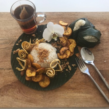 Nasi Uduk met Kripik Pisang (ontbijtrijst met bananenchips)