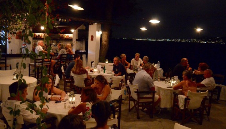 Zo kan ik mij nog een anekdote herinneren waar Hubbie en ik dagen erna nóg om moesten lachen. Het was een drukke avond in het restaurant en zoals dat gewoon is, zaten verschillende gasten, uit alle windhoeken komende, bij elkaar aan de grote ronde tafel. De wijn vloeide rijkelijk en het Internationale gezelschap leek wel op de locale Grieken, lekker luidruchtig. Eén van die tafelgasten was een alleen reizende meneer. Na een tijdje viel het Bryan op dat deze meneer niet meer aan de gesprekken deelnam en wel erg lang de katten, die altijd onder en rondom de tafels zitten, aan het voeren was. “De meneer” hing namelijk al enige tijd in dezelfde houding, met zijn arm over de stoelleuning, de hand richting de vloer. Even polshoogte nemen dacht Bryan, wat een toepasselijke woordkeuze ahum, want Bryan voelde namelijk geen polsslag meer bij “de meneer”.